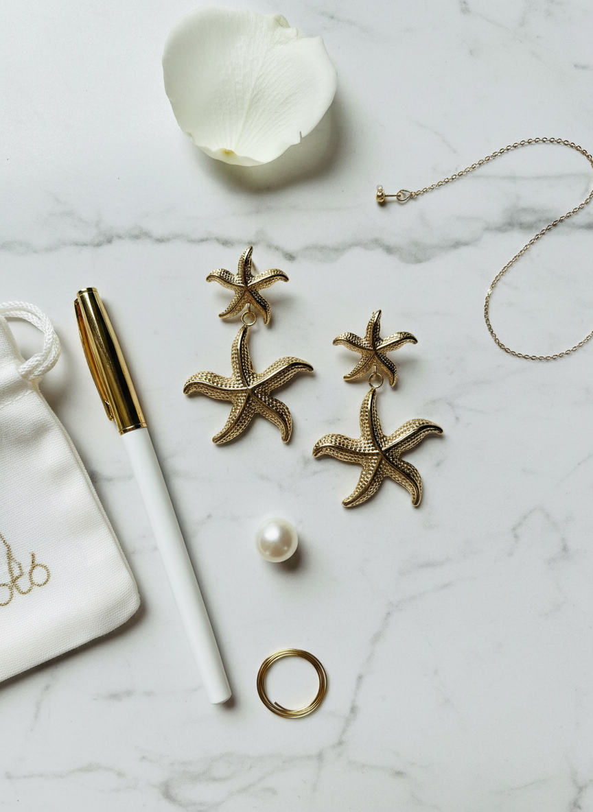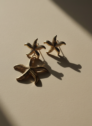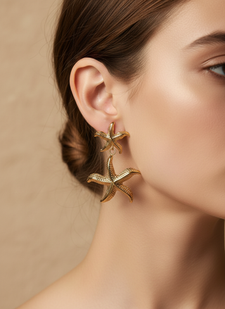 Elegante dubbele zeester oorhangers in goud. 18K verguld roestvrij staal met prachtig gedetailleerd design. Perfect voor zomer, strand en vakantie. Waterdicht en hypoallergeen voor dagelijks gebruik.
