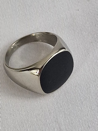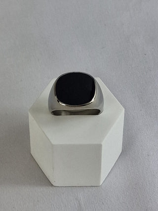 - Heren Zegelring met Zwarte Steen - Roestvrij Staal - Glade Afwerking