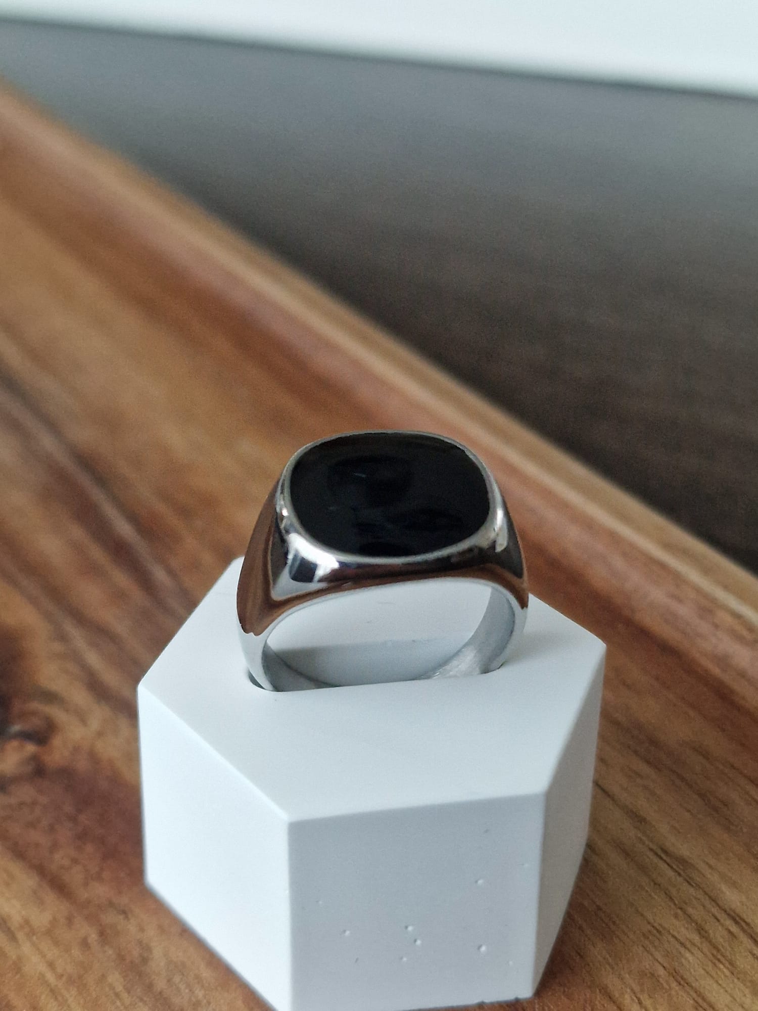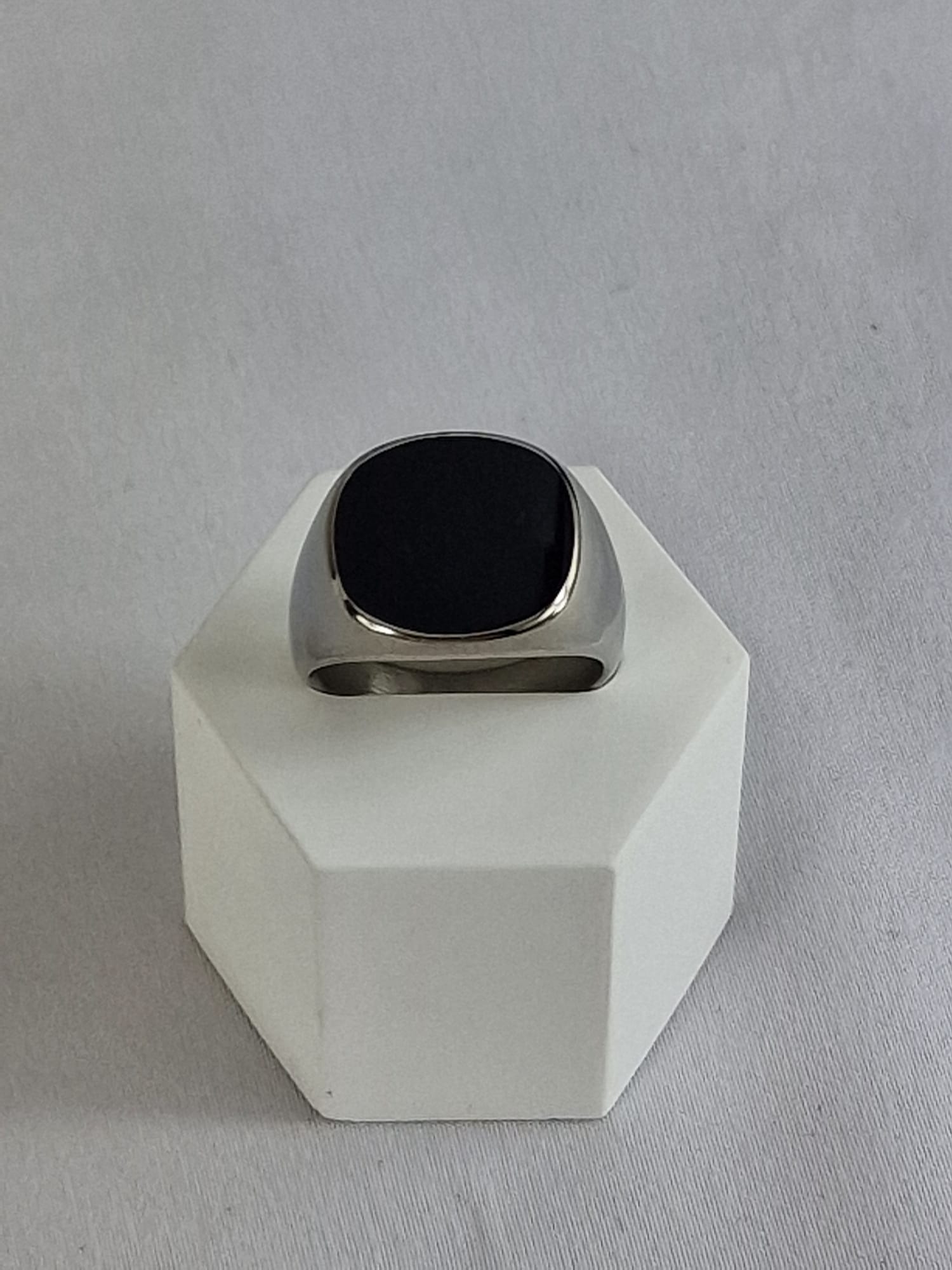 Deze stijlvolle zegelring is perfect voor de moderne man die van klassieke elegantie houdt. De zwarte steen vormt een mooi contrast met het zilverkleurige roestvrij staal, terwijl de glade afwerking zorgt voor een luxe uitstraling. Het robuuste roestvrij stalen materiaal garandeert duurzaamheid en is bestand tegen dagelijks gebruik. Een tijdloos accessoire dat bij elke outfit past.