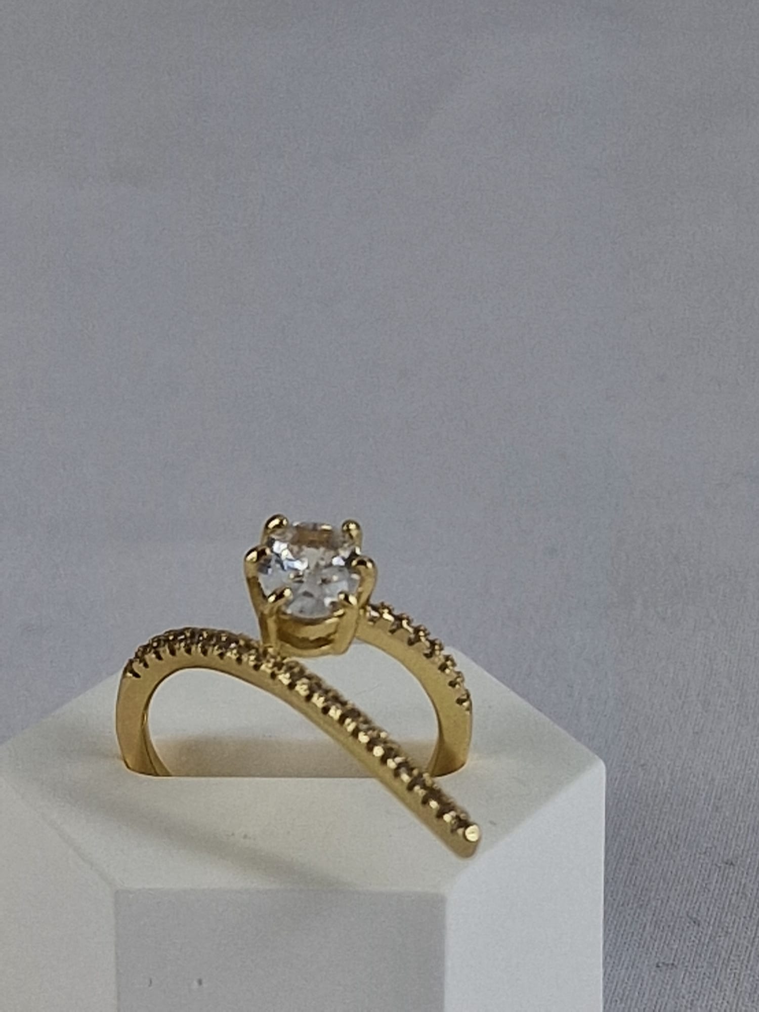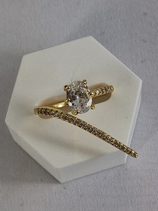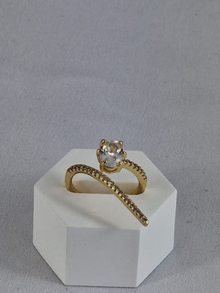 Schitterende dames ring met cubic zirkonia in een prachtige goud kleur. Deze elegante ring is verkrijgbaar in verschillende maten en combineert luxe uitstraling met betaalbaarheid. Perfect voor elke gelegenheid.