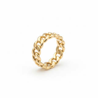 Deze elegante damesring met schakelmodel combineert klassieke schoonheid met een moderne twist. Het verfijnde schakelpatroon geeft de ring een unieke en luxe uitstraling.