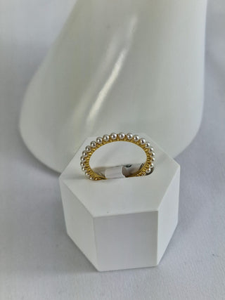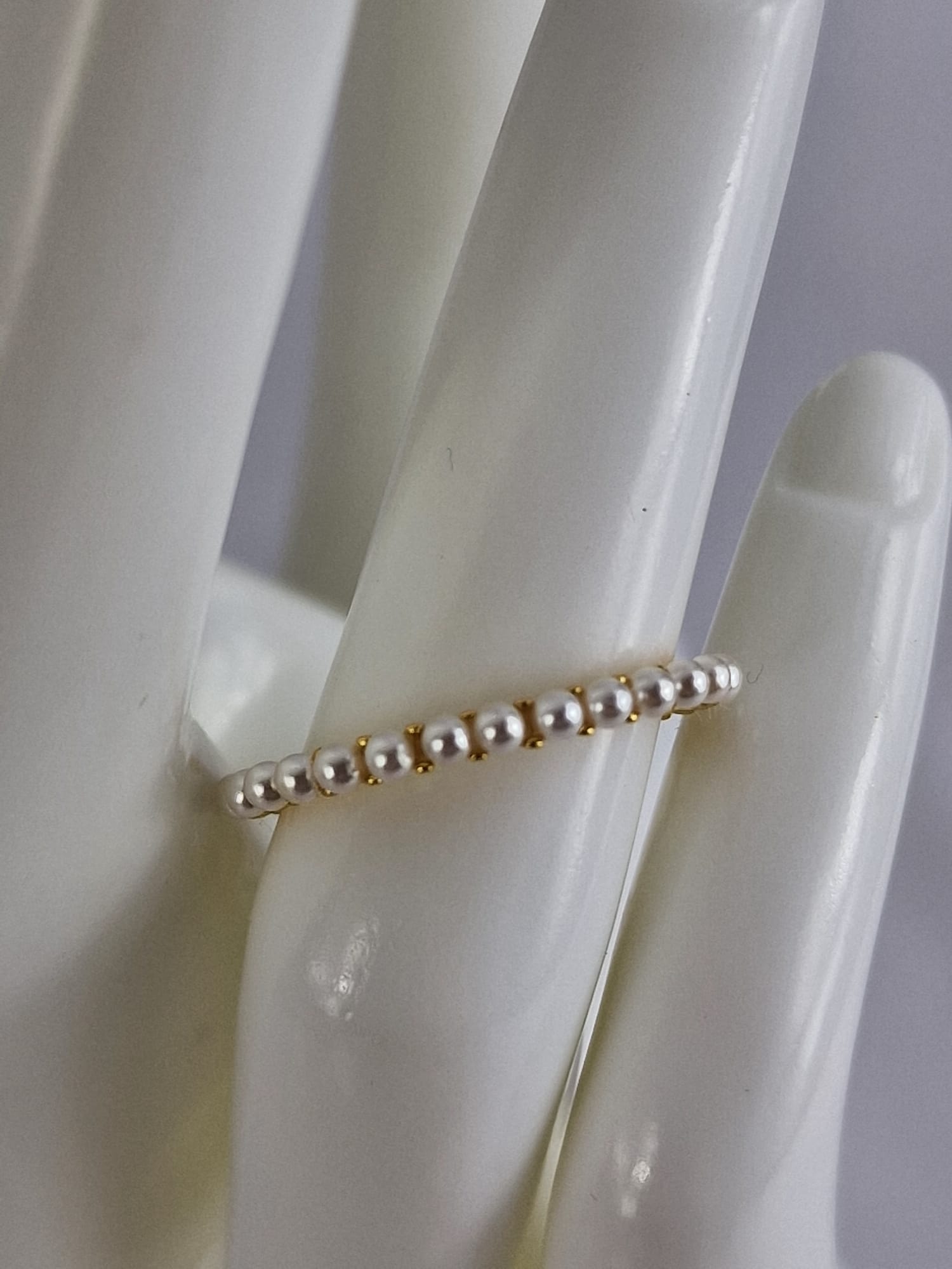 Elegante en subtiele ring van 925 sterling zilver met hoogwaardige AAAA kwaliteit zoetwaterparels. Deze verfijnde ring combineert tijdloze elegantie met moderne stijl. De glanzende parels rondom de band geven een luxe en vrouwelijke uitstraling. Perfect voor dagelijks gebruik of speciale gelegenheden.