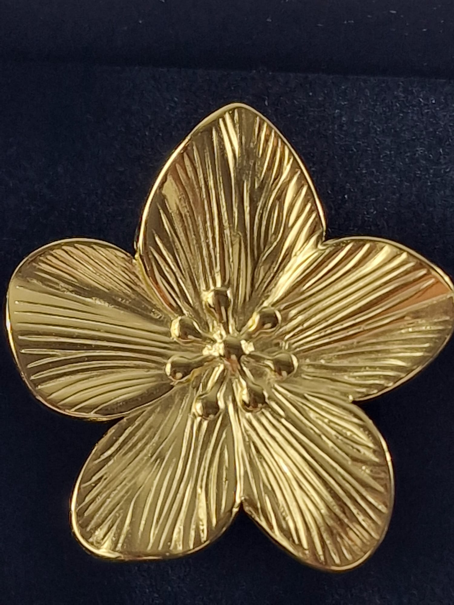 Deze opvallende grote bloem ring met prachtig gedetailleerde bladnerven is een echte eyecatcher. Het botanische design met verfijnde textuur creëert een luxe en natuurlijke uitstraling. Gemaakt van duurzaam roestvrij staal met luxe 14K goud vergulde afwerking. Verstelbaar, dus past altijd perfect!