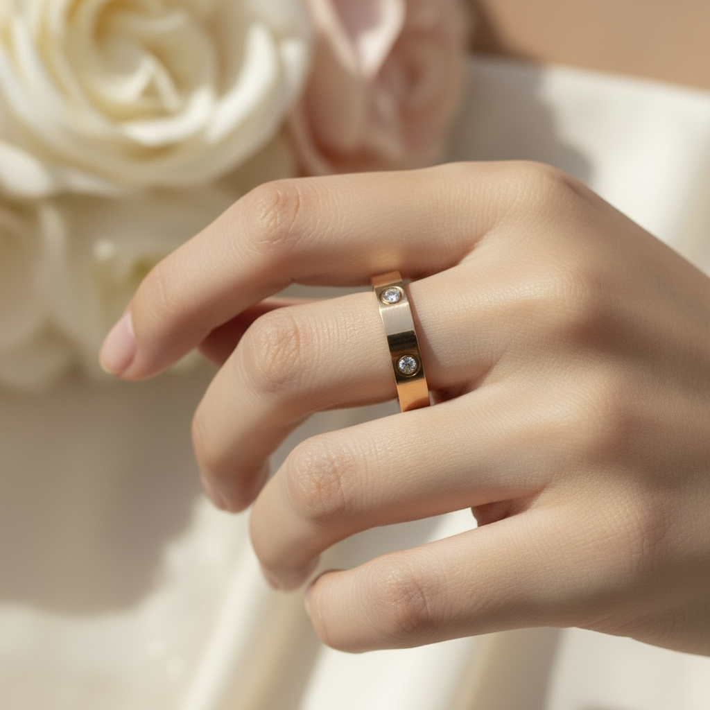 Een elegante en tijdloze vriendschapsring met fonkelende zirkoon stenen. Deze stijlvolle ring is gemaakt van hoogwaardig titanium roestvrij staal en is 18K verguld in drie prachtige kleuren: goud, zilver en rosé goud.