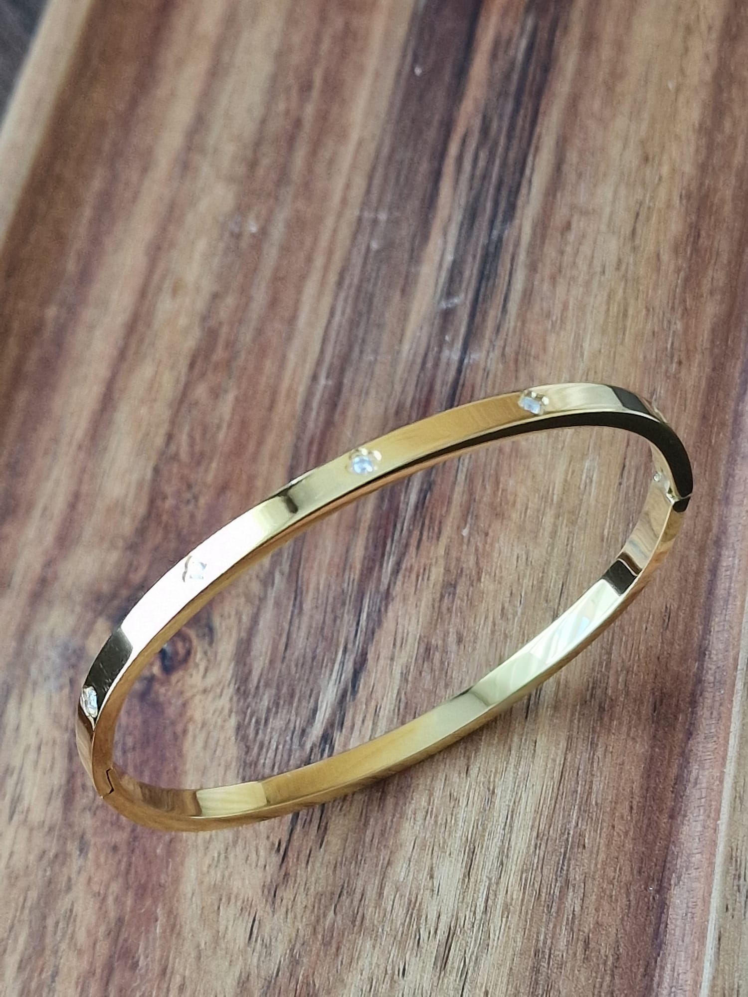 Een elegante en tijdloze slavenarmband in prachtig goudkleur met subtiele zirkoon details. Deze klassieke armband is een must-have accessoire dat elke outfit compleet maakt en perfect is voor zowel dagelijks gebruik als speciale gelegenheden.