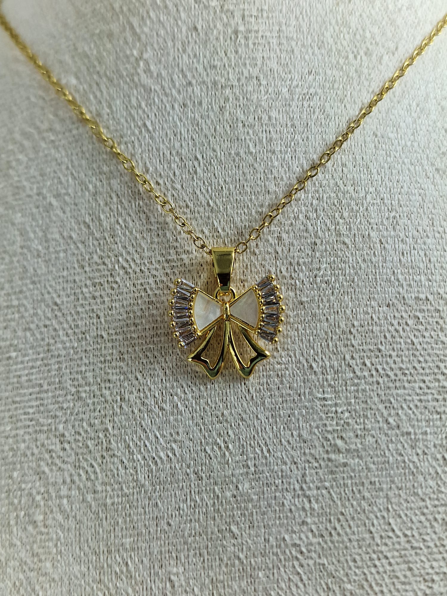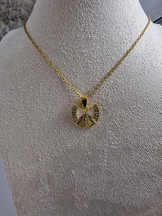 Elegante gouden strik ketting met fonkelende zirkoon stenen