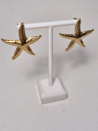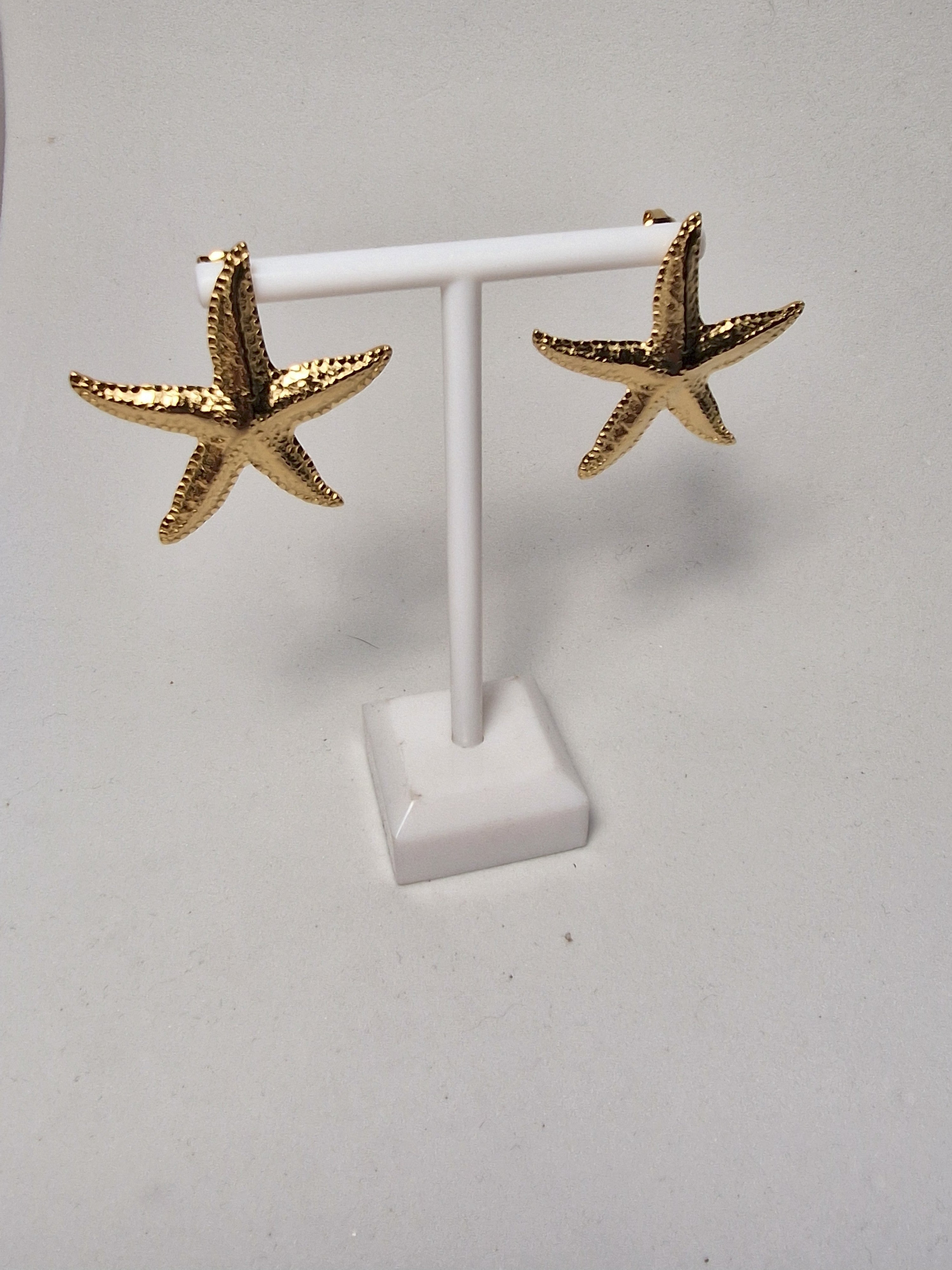Seestern-Ohrringe, groß, Edelstahl, vergoldet, goldfarben