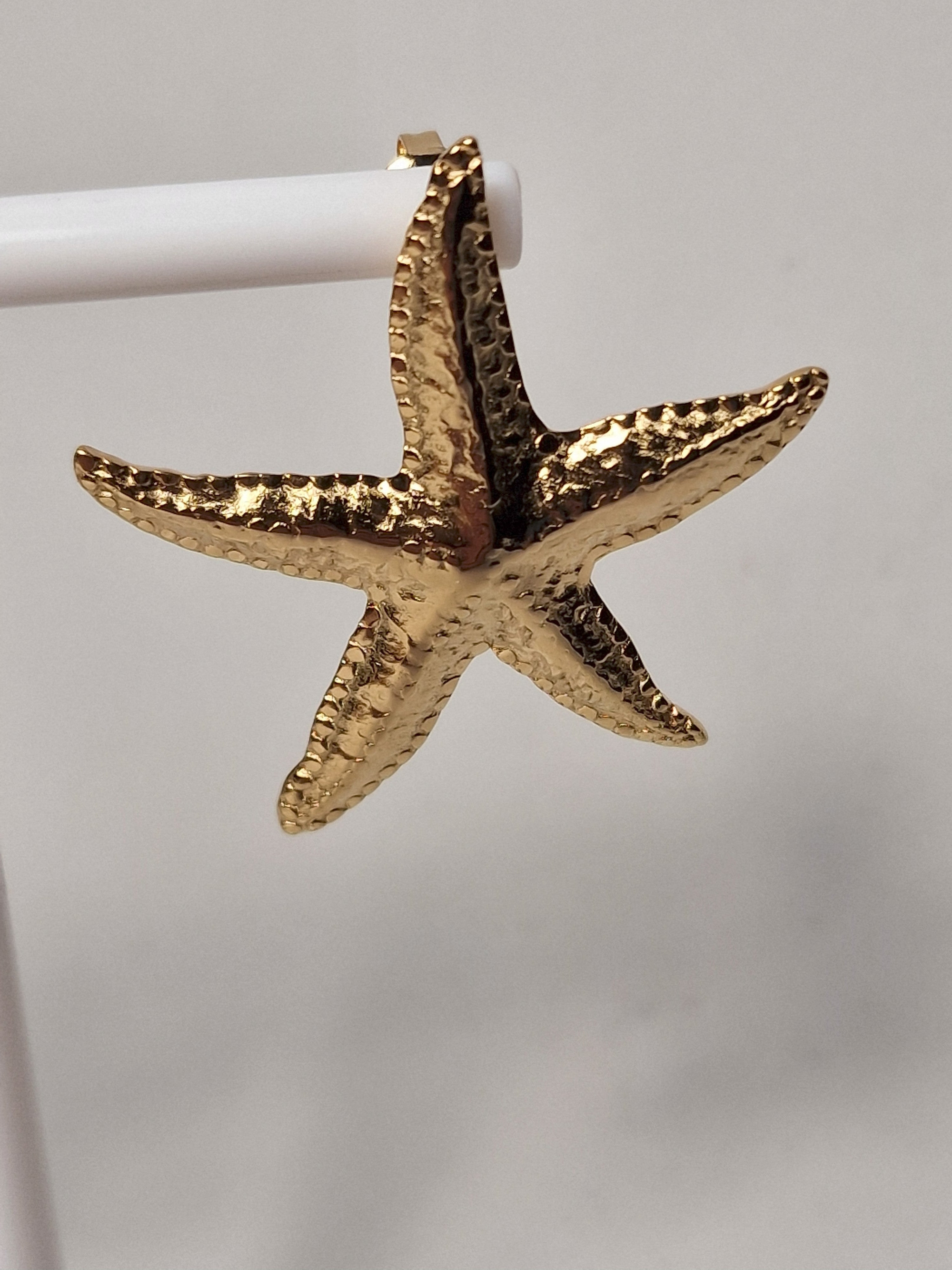 Große, trendige Seestern-Ohrringe aus 18-karätig vergoldetem Edelstahl mit wasserfester Beschichtung. Diese auffälligen Anhänger sind perfekt für den Sommer und verleihen Ihrem Outfit einen verspielten Strand-Look. Ideal für den Urlaub, den Strand oder einfach, um Ihrem Look eine sommerliche Note zu verleihen.