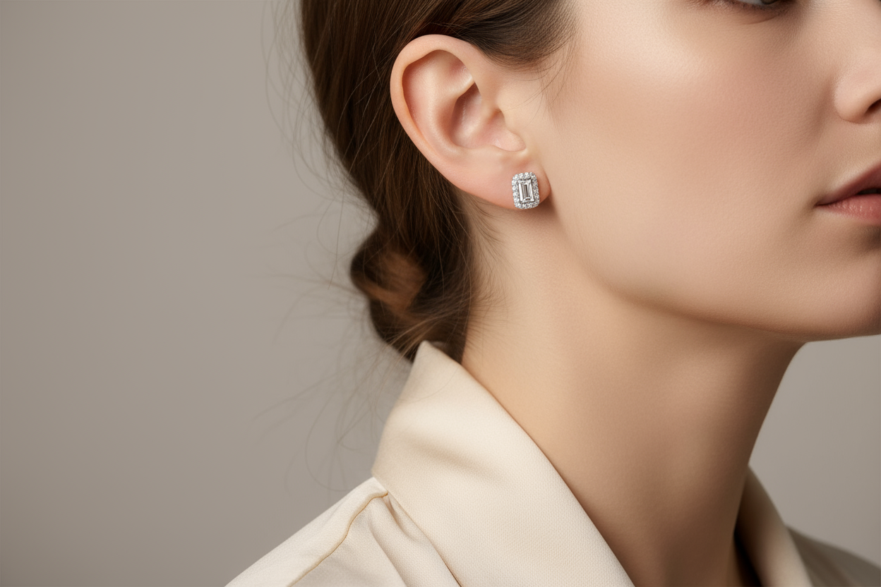 - Elegante Baguette Zilver 925 Oorknopjes met Zirkoon Dames
