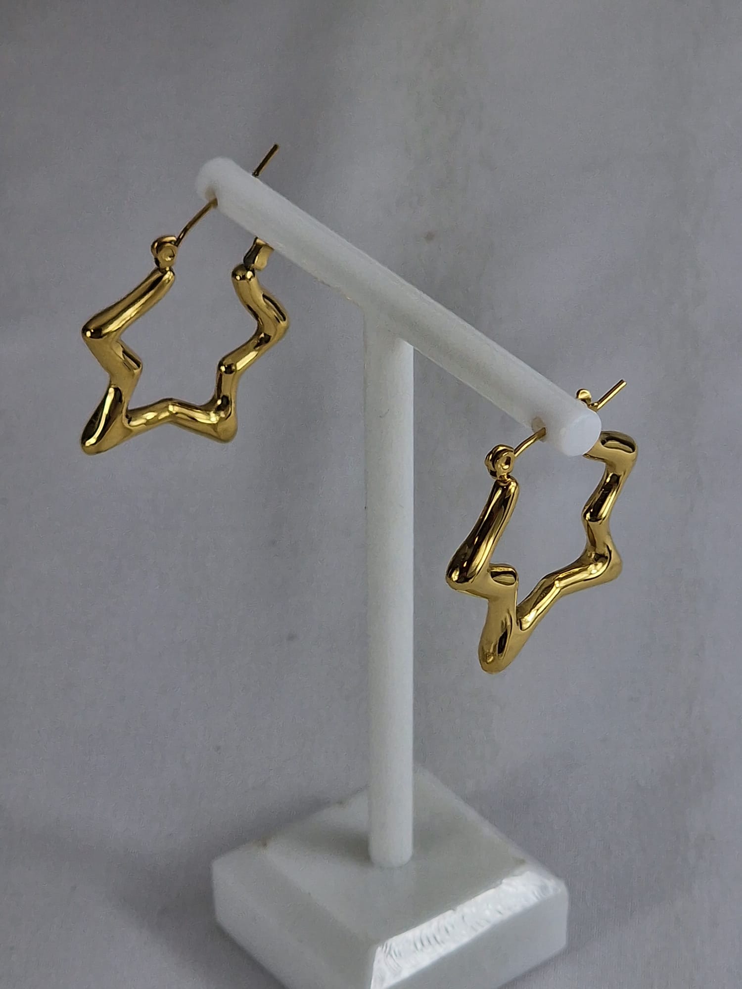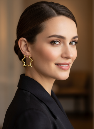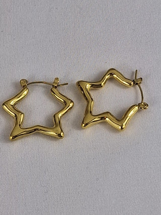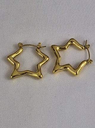 Wunderschöne Retro-Creolen mit Sternenmotiv aus hochwertigem Edelstahl mit 18-karätiger Vergoldung. Diese ausdrucksstarken Ohrringe vereinen Vintage-Charme mit einem verspielten Sternenmotiv. Perfekt für alle, die auffallen und einzigartigen Schmuck lieben.