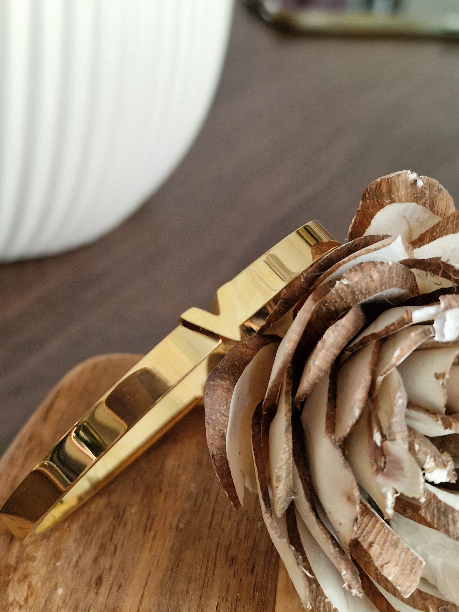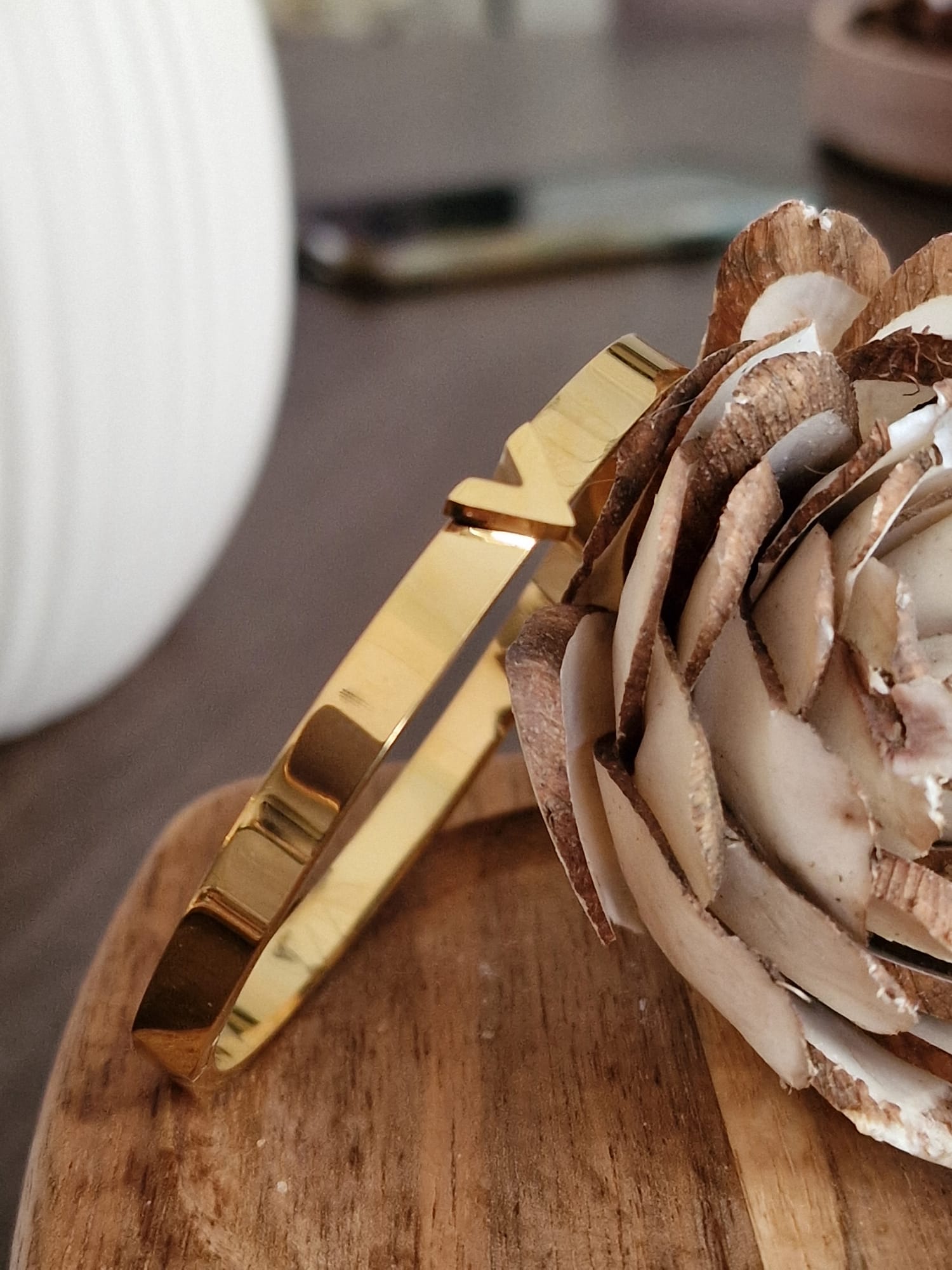 Entdecken Sie die perfekte Balance zwischen Eleganz und Stärke mit diesem luxuriösen Designerarmband. Gefertigt aus hochwertigem Edelstahl und mit 18-karätigem Gold plattiert, strahlt dieses Unisex-Schmuckstück pure Klasse aus. Dank seines schlanken Designs und des dezenten V-förmigen Details ist das Armband für Damen und Herren gleichermaßen geeignet.