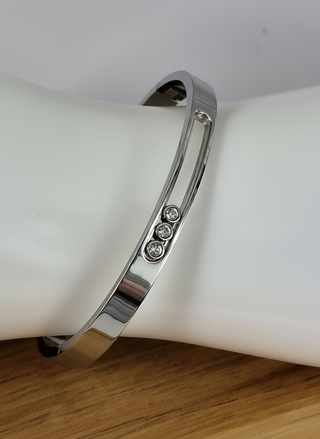 Voeg een vleugje elegantie toe aan je look met deze prachtige armband. De armband is versierd met drie fonkelende zirkonia steentjes die subtiel schitteren bij elke beweging.