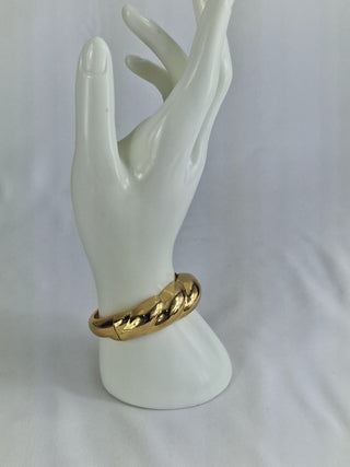 Das geknitterte, doppellagige Design fängt das Licht auf faszinierende Weise ein und erzeugt ein verspieltes Spiel aus Schatten und Schimmer. Ob im Geschäftstreffen oder beim Ausgehen – dieses Armband verleiht jedem Outfit mühelos einen Hauch von Eleganz.