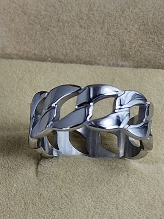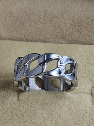 Stijlvolle dames ring met een modern schakeldesign, gemaakt van hoogwaardig 14K verguld roestvrij staal. Deze ring combineert elegantie met duurzaamheid en is verkrijgbaar in twee prachtige afwerkingen: zilver en goud.