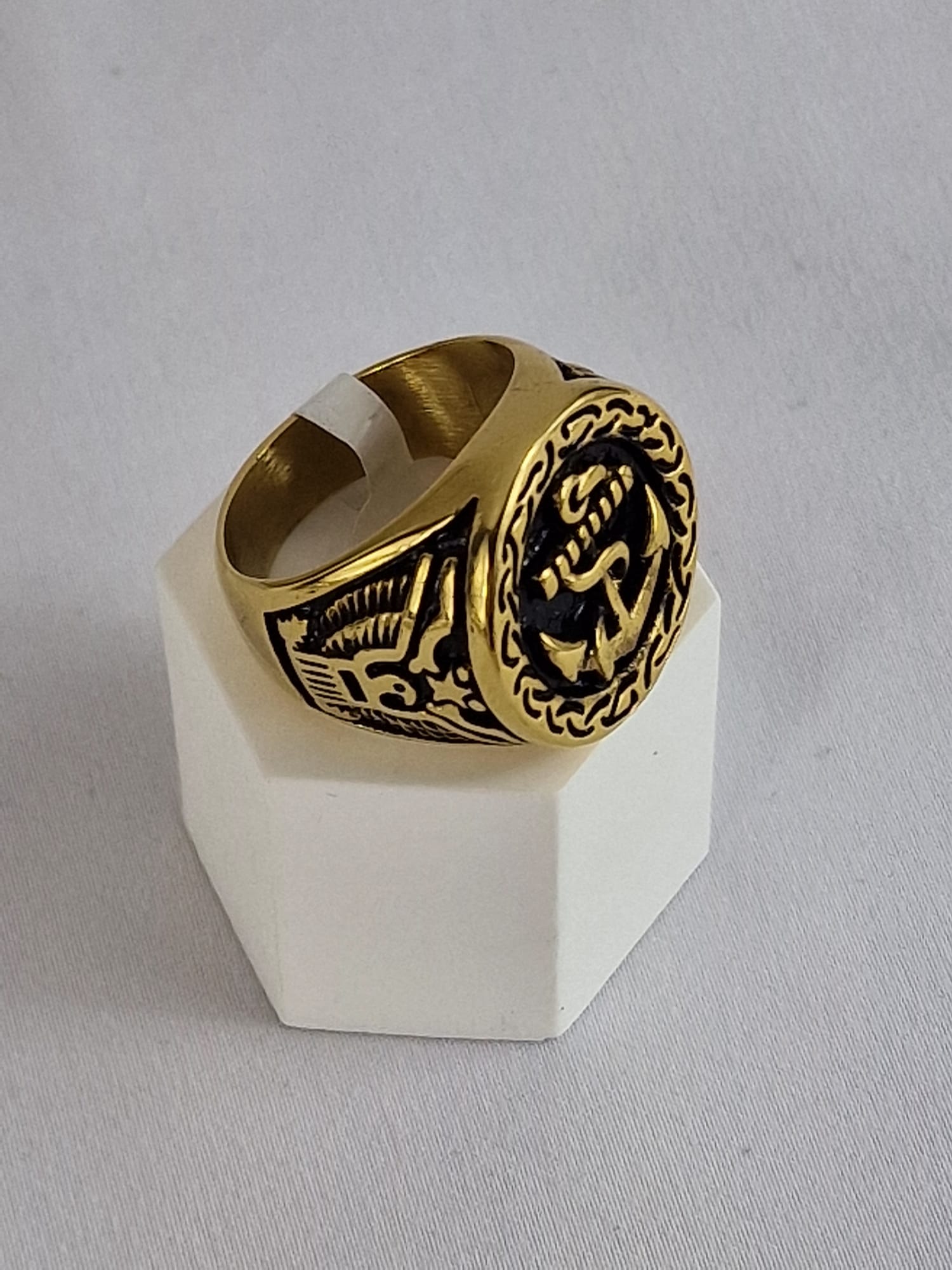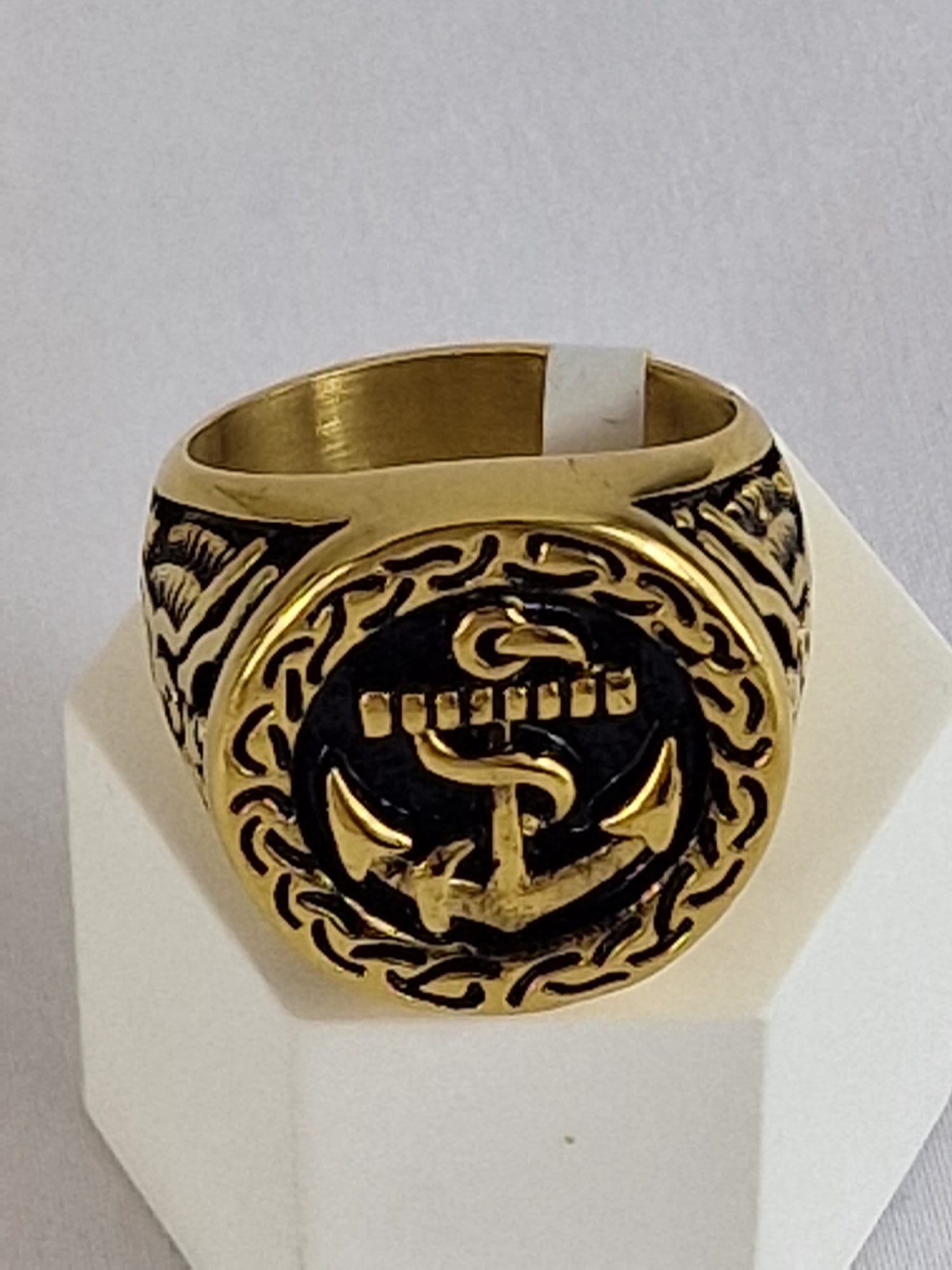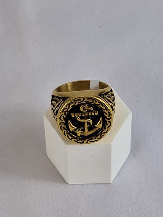 Stoere vintage Viking ring met zwart anker design voor mannen. Gemaakt van hoogwaardig roestvrij staal met 18K vergulde afwerking. Deze krachtige ring combineert Viking symboliek met moderne duurzaamheid en is perfect voor de moderne man die van statement sieraden houdt.